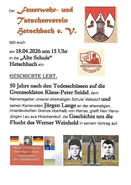Die Jubiläums-Bücher von 1200 Jahre Veilsdorf „Mein Veilsdorf an dem Werrafluss“, das Jubiläumsband „850 Jahre Heßberg“ und die Dorfchronik „700 Jahre Hetschbach“ sind für nur je 10 € in der Gemeindeverwaltung käuflich zu erwerben.