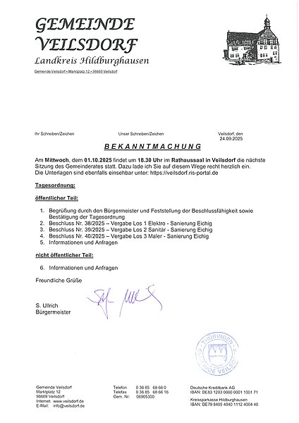 Ab dem 28. März 2025 können Einwohner der Gemeinde Veilsdorf wieder ihren